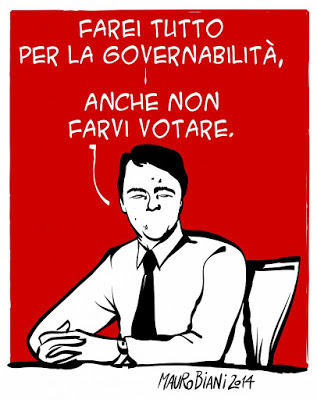 Un governo sostenuto dalla fiducia di pochi spinge una modifica della Costituzione che riduce la partecipazione democratica. Propongono un ibrido furbo, un esile guscio di rappresentanza popolare con una polpa oscura: due camere, ma solo una è elettiva, benché figlia di un voto distante dalla partecipazione della cittadinanza. L’altra si chiama ancora Senato, ma i componenti non sono più elettivi; vengono individuati dagli enti locali, sulla base di logiche che in questo momento non sono esplicitate, ma che fanno indovinare basse manovre e stretti interessi delle segreterie di partito, o delle segreterie senza neppure un partito. Consiglieri regionali e sindaci, non dispensati dalle funzioni, riceverebbero in aggiunta la carica di senatore: non si sa dove troverebbero il tempo per un onere che – almeno a parole – dovrebbe essere gratuito, mentre di sicuro troverebbero sulla loro strada i legami e le clientele che fanno parte dell’andamento degli uffici locali, dove restano incardinati.