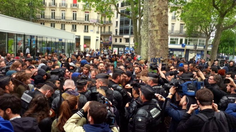 In Place de la République, luogo delle Nuit Debout, è stata organizzata una provocatoria manifestazione dai sindacati di polizia. Circa 600 poliziotti si sono riuniti con cartelli per denunciare l’odio che le manifestazioni di questi mesi stanno esprimendo contro la polizia.