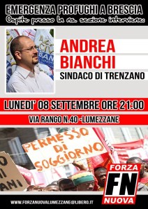 Si trova più a suo agio quando relaziona coi bravi ragazzi di FORZA NUOVA. O sostiene, vigorosamente, la sindaca di Collio (val Trompia), Mirella Zanini, nella sua campagna esasperata contro i profughi residenti nella frazione di San Colombano.