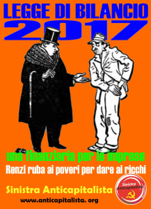 Sarebbe naturalmente buona cosa se lo scontro di Renzi con le politiche di austerità fosse reale, se lo sforamento delle regole europee fosse accompagnato da un vasto piano di salvaguardia dei salari, delle pensioni, di investimenti statali rivolti a creare posti di lavoro stabili e sicuri, di opere utili al benessere dei cittadini e di salvaguardia complessiva dell’ambiente, di un ritorno in campo dell’intervento pubblico per i bene comune., recuperando i soldi là dove ci sono con una patrimoniale e una riforma fiscale che faccia pagare le tasse ai ricchi. Ma non è così: la finanziaria resta dentro le politiche liberiste.