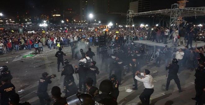 Más de 10.000 personas frente al Palacio de Gobierno estatal participaron en una manifestación que degeneró en actos vandálicos cuando un grupo de jóvenes lanzó piedras y petardos contra los policías que vigilaban el edificio.