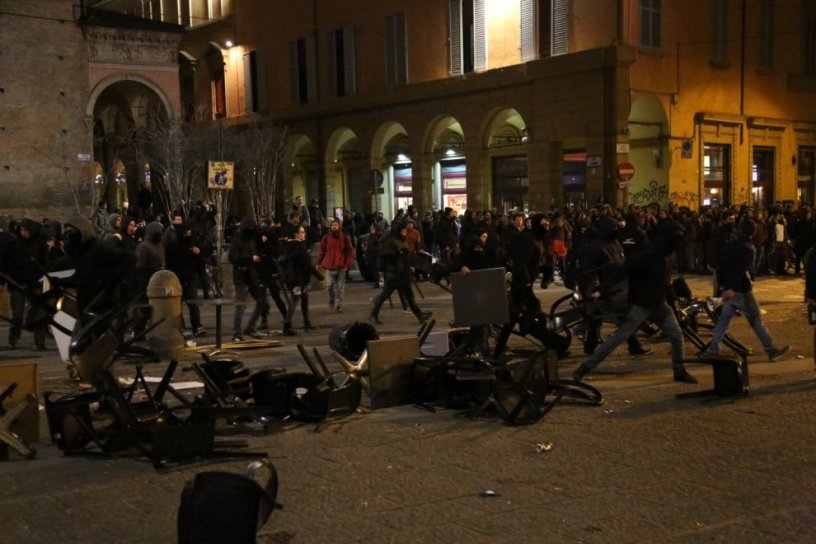 Duri scontri in piazza Verdi a Bologna tra studenti e polizia, dopo lo sgombero della biblioteca di Lettere, gli studenti hanno fatto delle barricate in piazza Verdi. Le forze dell’ordine sono partite con una lunga carica e hanno sostanzialmente liberato la piazza. Molte persone si sono rifugiate nei locali per ripararsi dalle manganellate.
