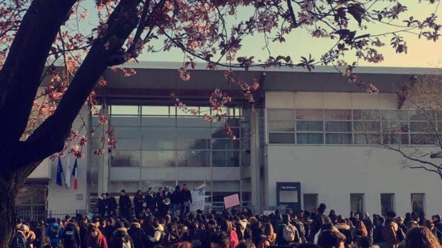 Blocus au lycée Mozart suite au résultat du premier tour des élections.