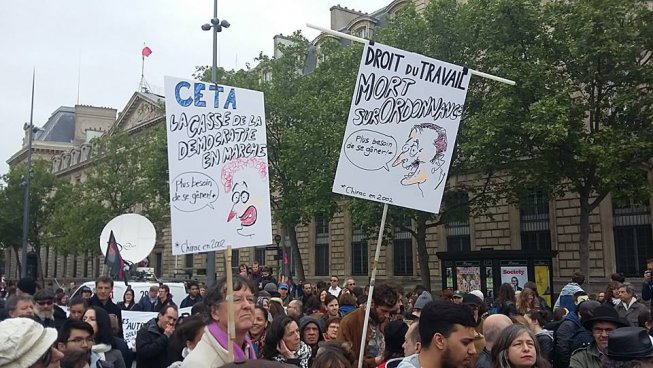 Ma la tolleranza verso la critica sociale contro Macron il nuovo presidente-banchiere è zero.
