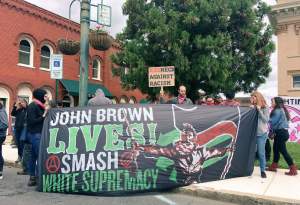 Quando un gruppo di militanti dell’ISO stava per fare ingesso nel Justice Park, il sito della contromanifestazione, da una delle entrate laterali, si era trovato di fronte una manciata di giovani uomini bianchi armati di fucili automatici e con bandane rosse avvolte attorno al collo in atteggiamento di guardia. La paura momentanea doveva però dissiparsi quando i rivoluzionari socialisti furono accolti da saluti calorosi e strette di mano. Gli uomini armati erano membri della Redneck Revolt (https://www.redneckrevolt.org), un gruppo di autodifesa operaia del Sud di recente formazione. La polizia municipale e statale era sul posto, mantenendo però un atteggiamento attendista quando i militanti di destra minacciavano i partecipanti alla contromanifestazione: Secondo la testimonianza del blog ProPublica: