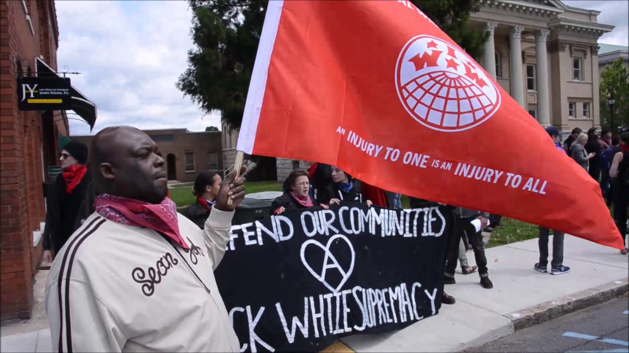 Quando un gruppo di militanti dell’ISO stava per fare ingesso nel Justice Park, il sito della contromanifestazione, da una delle entrate laterali, si era trovato di fronte una manciata di giovani uomini bianchi armati di fucili automatici e con bandane rosse avvolte attorno al collo in atteggiamento di guardia. La paura momentanea doveva però dissiparsi quando i rivoluzionari socialisti furono accolti da saluti calorosi e strette di mano. Gli uomini armati erano membri della Redneck Revolt (https://www.redneckrevolt.org), un gruppo di autodifesa operaia del Sud di recente formazione. La polizia municipale e statale era sul posto, mantenendo però un atteggiamento attendista quando i militanti di destra minacciavano i partecipanti alla contromanifestazione: Secondo la testimonianza del blog ProPublica: