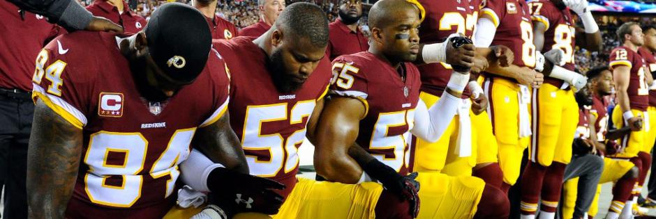 Il loro stare in ginocchio è il colpo più duro che Trump, l’amico pubblico suprematista, sta subendo.