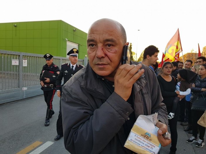 Riad, che porta gli occhiali, ha riportato un profondo taglio e contusioni, ma prima di farsi medicare ha voluto concludere l’intervento che stava portando avanti per rivendicare i diritti dei lavoratori, a partire da salari e condizioni di lavoro ma seguito di un malore è stato portato in ambulanza in ospedale.