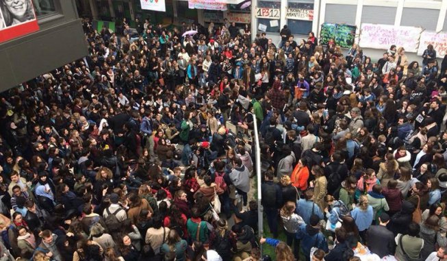 Environ 2000 étudiants, professeurs et personnels se sont rassemblés en assemblée générale ce lundi matin à l’Université parisienne Sorbonne-Nouvelle sous une pluie battante. Malgré des menaces répétées de groupes d’extrême-droite présents sur place, cette université parisienne pourtant peu connue pour être un bastion de mobilisation est entrée en grève ce matin. De nombreuses interventions de professeurs et de personnels BIATTS ont dénoncé le manque de moyens, exprimé leur refus de la loi ORE, et ont appelé à la grève malgré l’imminence des partiels. Des travailleurs en lutte sont également intervenus apporter leur soutien aux étudiants. L’Assemblée Générale a, après 5h de débats, voté le retrait de la loi ORE ni amendable ni négociable, ainsi que l’occupation et le blocus reconductibles de la fac.