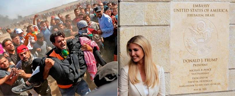 Oggi, migliaia e migliaia di palestinesi sono scesi nuovamente in Cisgiordania e nella Striscia di Gaza per opporsi al contemporaneo spostamento dell’ambasciata statunitense a Gerusalemme, così come annunciato sciaguratamente da Trump alcune settimane or sono.