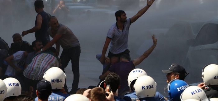 Dopo un attacco della polizia a manifestazione di protesta contro la destituzione dei sindaci curdi a Istanbul si sono verificati scontri di piazza. Molte persone sono state arrestate, un uomo è stato ferito con un coltello.Una manifestazione del Partito Democratico dei Popoli (HDP) nel quartiere di Istanbul di Kadiköy è stata attaccata dalla polizia. I militanti HDP volevano fare una dichiarazione presso il teatro dell’opera Süreyya contro la destituzione dei sindaci di Amed, Van e Mêrdîn quando sono stati accerchiati dalla polizia e respinti violentemente fuori dalla piazza. La folla ha quindi scandito „Ovunque Amed, ovunque resistenza“ e „La vostra repressione non ci può intimidire“.