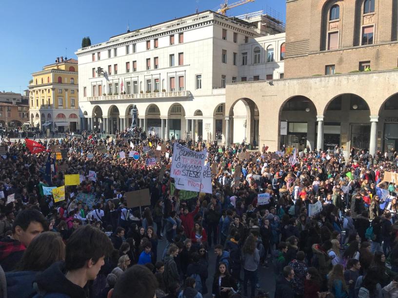 - Venerdì 27 settembre, a partire dalle 9, il centro città è stato letteralmente invaso da una marea di giovani (e meno giovani) per la grande manifestazione internazionale di protesta contro il cambiamento climatico. Circa 10 mila persone hanno sfilato da Piazza Arnaldo a Piazza Loggia, dove si è concluso il corteo con vari interventi, alcuni dei quali caratterizzati da una coscienza anticapitalista sorprendente. Presente al corteo lo spezzone del Forum Sociale Anticapitalista Bresciano (tra cui abbastanza numerosi i compagni di Sinistra Anticapitalista, che hanno distribuito il volantino nazionale). Presente anche una delegazione degli operai della Pasotti di Pompiano, una fabbrica metalmeccanica che sembra refrattaria al clima di riflusso che colpisce il movimento operaio, visto il livello di coscienza sindacale e politica dei suoi lavoratori, aderenti in grande maggioranza all’opposizione di sinistra nella FIOM. A quanto ci risulta è l’unica fabbrica metalmeccanica ad aver scioperato oggi, ed è l’unica, almeno nel Bresciano, a scioperare ogni 8 marzo in occasione dello sciopero femminista internazionale (Non Una di Meno). Moltissimi i cartelli e gli striscioni con parole d’ordine creative e combattive: ci ha colpito uno verde e giallo, lunghissimo, con scritto, in bresciano: Bolsonaro, desmet de brusà l’Amazzonia!”.