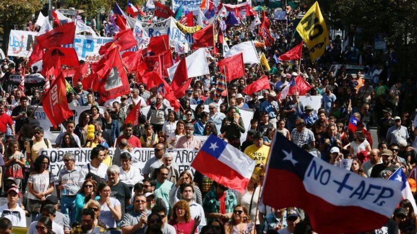 K. N.: Questo pacchetto di misure è stato annunciato martedì 22 ottobre. Piñera è un uomo d’affari. La mia prima impressione è stata che il presidente si comportava come un uomo d’affari nella contrattazione collettiva. Rispose come se fosse un’azienda, non una società, offrendo cose demagogiche. In sostanza, il 70 per cento delle misure riguardava le pensioni, perché Piñera sa che si tratta di un punto di conflitto molto importante. Poi c’è stata la questione della salute e degli stipendi. Quindi quello che ha offerto è di espandere la copertura sovvenzionando i farmaci nelle mani di aziende private. Per garantire il reddito minimo, ha proposto di sovvenzionare le aziende private con denaro pubblico, e se un lavoratore guadagna meno del reddito minimo, lo Stato lo integra. Per quanto riguarda le pensioni, l’aumento dell’importo per i pensionati avviene senza toccare gli amministratori dei fondi pensione che sono istituti finanziari. Quindi, è l’approfondimento della logica sussidiaria alle società private della costituzione di Pinochet. A nessuno importava di queste misure.