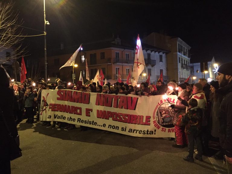 Migliaia di No Tav in marcia ieri sera a Bussoleno, Val Susa, per la liberazione di Nicoletta Dosio, storica attivista ultrasettantenne arrestata lunedì scorso, ma anche di Giorgio e Luca, arrestati poco prima delle festività natalizie. Nicoletta, Giorgio e Luca sono detenuti al carcere delle Vallette di Torino. Un primo momento di solidarietà era stato proprio all’esterno del carcere, la notte tra il 31 dicembre e il 1 gennaio, con tanti solidali che hanno voluto festeggiare lì il Capodanno con slogan e fuochi d’artificio, per non lasciare soli i 3 No Tav e tutti gli altri detenuti.