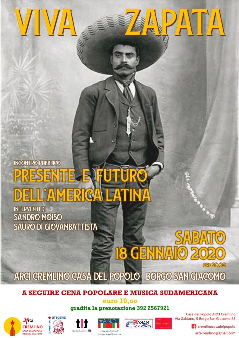 Sabato 18 gennaio all’arci Cremlino di Borgo San Giacomo, incontro pubblico per discutere del presente e del futuro dell’America Latina alla luce di quanto sta accadendo negli ultimi mesi