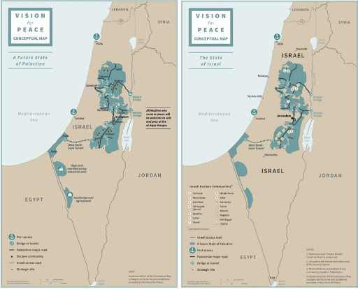 La lista delle provocazioni della “Visione” di Trump é lunga. Va dall’esigenza di une Stato palestinese completamente demilitarizzato al mantenimento del controllo dello spazio aereo da parte di Israele passando dalla promessa di una iniezione di miliardi di dollari nei territori dei Palestinesi a condizione che questi rinuncino definitivamente a tutti i loro diritti.