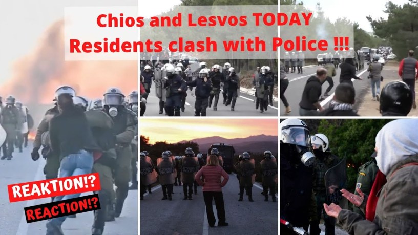 Una situazione lungamente preannunciata ma iniziata concretamente lunedì 24 febbraio quando, da una nave civile che attracca nel porto di Mesta sull’isola di Chio, escono marciando 300 poliziotti Mat (squadre speciali di polizia antisommossa), accompagnati da macchine escavatrici per l’inizio dei lavori di costruzione dei centri. «Siamo in guerra e non lo sapevamo?» si sente dire da un locale sconcertato che riprende l’attracco-attacco. Attracco peraltro inaspettato: orario e porto di arrivo non erano noti, dal momento che i sistemi di geo-localizzazione dell’imbarcazione risultavano disattivati dopo la partenza; una nave fantasma che navigava non vista verso le isole del Dodecaneso trasportando al suo interno l’implementazione di un controverso piano governativo. Le schermaglie tra Mat e locali iniziano immediatamente, caratterizzate dal subitaneo utilizzo di gas lacrimogeni e altri agenti chimici lanciati a distanza verso i manifestanti.