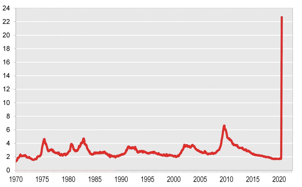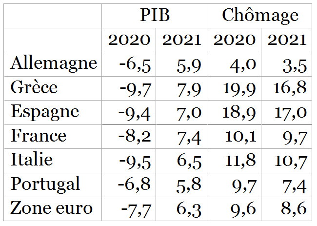 I dati relativi al 2020 sono provvisori ed illustrano bene le dimensioni della crisi. Ma, dato che si tratta di una crescita media di un anno rispetto all’altro, significano implicitamente una ripresa enorme a partire dalla seconda metà dell’anno. Nel caso della Francia, il governo ha modellato il suo ultimo bilancio su un’ipotesi di calo del PIL dell’8% nel 2020 ma, calcolando la caduta che già si è registrata, ciò equivale a postulare una crescita molto improbabile del 35% nel terzo trimestre e del 13% nel quarto.