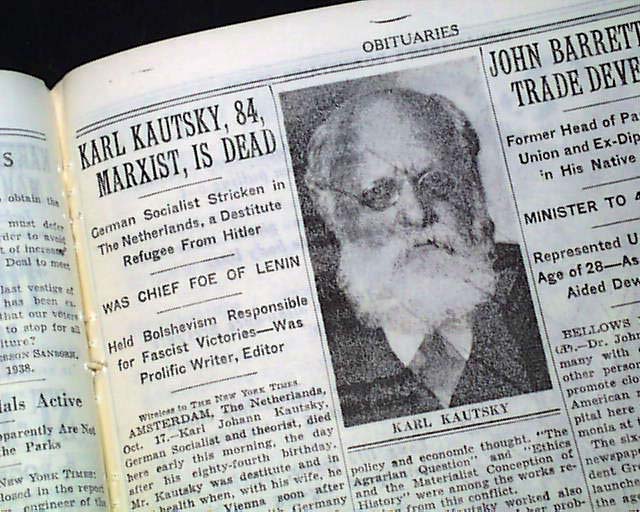 Kautsky passò il resto della sua vita ad attaccare con sempre maggiore astio il successo della rivoluzione socialista in Russia. Con il fascismo in ascesa, la speranza di Kautsky che la SPD potesse accumulare costantemente potere (come aveva fatto nei suoi giorni prima della guerra) si rivelò infondata. Morì in esilio nel 1938 e fu dimenticato dai più.