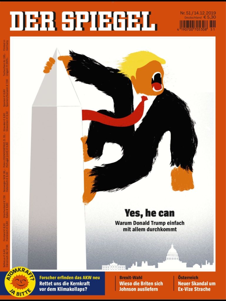 Oggi che l’America va a fuoco, vale la pena ricordare quella che poteva sembrare un’esagerazione giornalistica ma che era semplicemente la lettura precisa della realtà sinistra che si spalancava di fronte all’America e al mondo con l’arrivo alla Casa Bianca di Donald Trump. Ricordiamo qui un’altra copertina che fece scalpore. Di Der Spiegel.