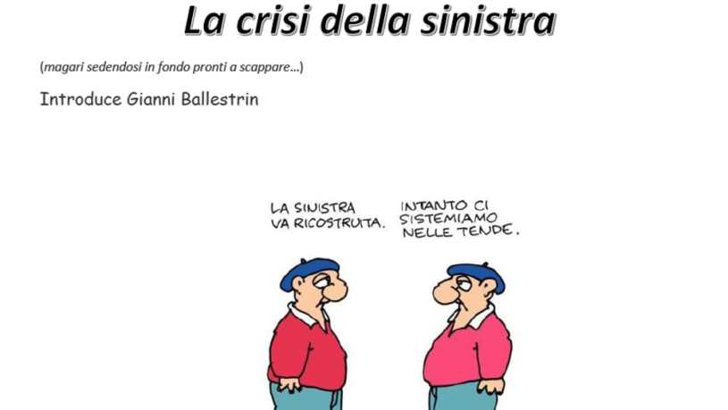 All’interno di uno spazio ampio sarebbero infatti possibili convergenze sui singoli temi e quindi la costruzione di iniziative comuni con settori diversi e potrebbero svilupparsi in prospettiva alleanze stabili che potrebbero portare alla formazione di organizzazioni politiche con una maggiore massa critica, capaci di intervenire con maggiore efficacia nel quadro politico e sociale, costruendo una alternativa alle forze della destra, ma anche al PD e al M5S, cioè alle diverse varianti politiche della borghesia italiana. E’ forse una corsa contro il tempo per impedire che il malcontento sociale sia polarizzato dalle forze della destra reazionaria.