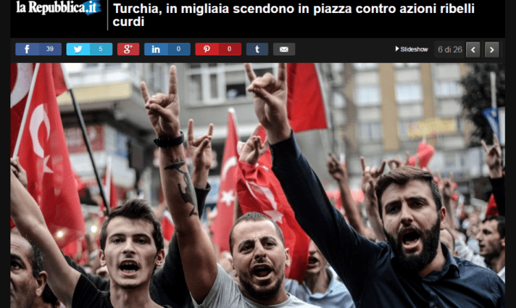 Magari da quello che qualcuno ha sbrigativamente definito “uno scontro tra una potenza imperialista (la Francia) e una sub-imperialista (la Turchia)” verrà fuori qualcosa di buono. Per esempio la messa fuorilegge – stavolta effettiva e definitiva – dei Lupi grigi nell’Esagono.