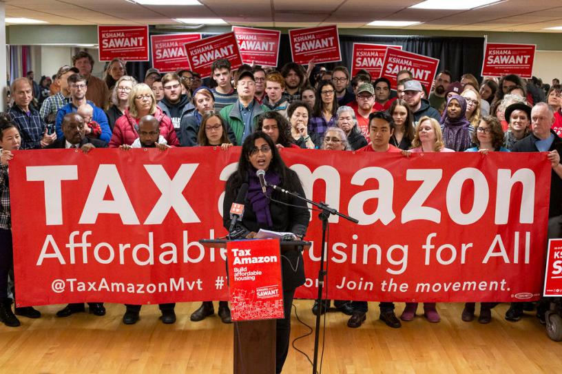 Con le Tax Amazon Action Conference è stato costruito con centinaia di attivisti, sindacati e associazioni, quel movimento dal basso per tassare le più ricche società di Seattle e finanziare la costruzione di edilizia pubblica, di alta qualità, economica, ed efficiente dal punto di vista energetico, parte importante di un Green New Deal “socialista”, «per finanziare migliaia di posti di lavoro e progetti che risolvono i problemi delle comunità. Sappiamo – spiega Sawant – che le grandi imprese si batteranno con le unghie e i denti per mantenere il loro paradiso fiscale. Per la Tax Amazon dovremo costruire un movimento potente. Il nostro compito immediato è quello di presentare una legge d’iniziativa popolare a febbraio, in modo da poter iniziare a raccogliere le firme per far votare la nostra Amazon Tax al voto di novembre».