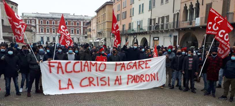 Lo sciopero generale indetto oggi da SICOBAS, SLAI COBAS per il Sindacato di Classe e Assemblea dei Lavoratori Combattivi in tutta Italia pare che abbia avuto un discreto successo, almeno nel settore della logistica, roccaforte dei due sindacati combattivi, con qualche effetto non irrilevante nel settore dell’istruzione (con una manifestazione davanti al Ministero a Roma) e nei trasporti. Ci sono state mobilitazioni significative in una trentina di città. Poco, si dirà. Vero, ma è, forse, come negli auspici degli organizzatori, un inizio di un percorso verso l’allargamento del fronte di classe, per uscire dalla passività e dal riflusso degli ultimi anni. A Brescia la giornata è iniziata col presidio-volantinaggio ai cancelli dell’IVECO (ex OM-FIAT), un po’ la fabbrica simbolo della città, iniziato alle 6,45, in coordinamento con i compagni del Comitato Futuro Iveco. Il punto più alto della mobilitazione è stato raggiunto verso le 10, quando oltre 250 lavoratori, in maggioranza giovani ed immigrati appartenenti a SICOBAS e SLAI COBAS, con qualche compagno dell’opposizione CGIL e dei COBAS, si sono concentrati in Piazza Duomo, sotto la Prefettura, per diffondere gli obiettivi dello sciopero alla città ed incontrare (in delegazione, ovvio) il Prefetto. Gli slogan più diffusi (oltre al classico “Sciopero oggi, sciopero domani” e “Se toccano uno, toccano tutti”), soprattutto negli interventi dal “palco” (cioè la fontana un po’ rialzata da cui si parlava col megafono) riguardavano la riduzione d’orario a parità di salario, la patrimoniale progressiva per colpire i ricchi e la gestione dell’emergenza COVID: il tutto riassunto nello slogan che si vede sullo striscione in alto. La piazza era composta quasi esclusivamente da operai della logistica, con qualche lavoratore della scuola qua e là. Assenti le organizzazioni politiche, con l’esclusione di una decina di compagni di Sinistra Anticapitalista e di un paio di compagni dei CARC. Verso mezzogiorno una settantina di compagni ha deciso di andare a Paitone, a portare la solidarietà ai 15 lavoratori licenziati dalla cooperativa PK Work appaltata alla metalmeccanica BTE. Lì si è effettuato un picchetto combattivo di un paio d’ore, con lo slogan “NO ai licenziamenti, NO alla repressione! Facciamo pagare la crisi al padrone!”. Allarmata dal nutrito picchetto, la direzione della fabbrica (130 operai) ha chiamato i Carabinieri, che, bisogna dire, si sono comportati civilmente, limitandosi ad osservare la scena senza intervenire, se non per chiedere le generalità ad un compagno funzionario del SICOBAS. Con questa mobilitazione (la terza da quando è nata a Brescia l’Assemblea Lavoratori Combattivi) sembra di poter dire che questa realtà si stia lentamente consolidando. Ne approfitto per rivolgere un appello alle altre realtà della sinistra sindacale e politica bresciana (a cominciare dagli altri sindacati di base e dall’intera area dell’opposizione di sinistra in CGIL, dal PRC e dall’area del MAG47) affinché escano dalla loro passività di fronte ad una realtà certo ancora piccola e piena di limiti, ma quasi sola situazione di proletariato organizzato e combattivo nella nostra provincia. Come si dice a Brescia: pötost che nient, l’è mei pötost!