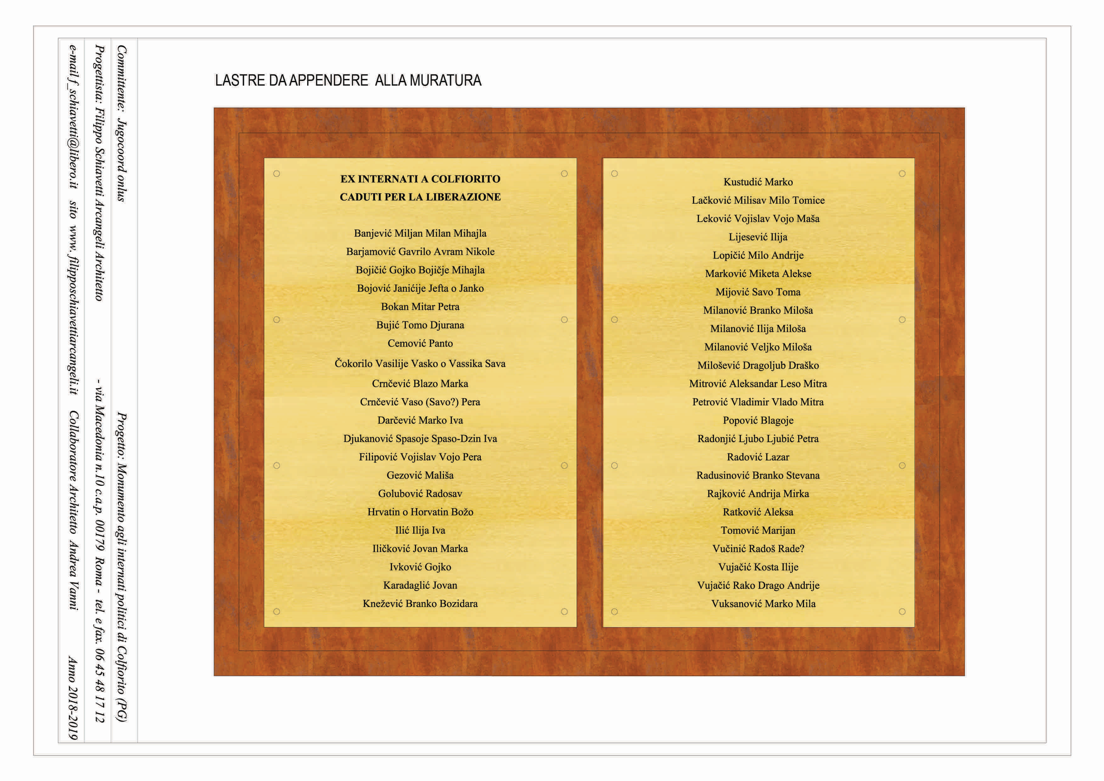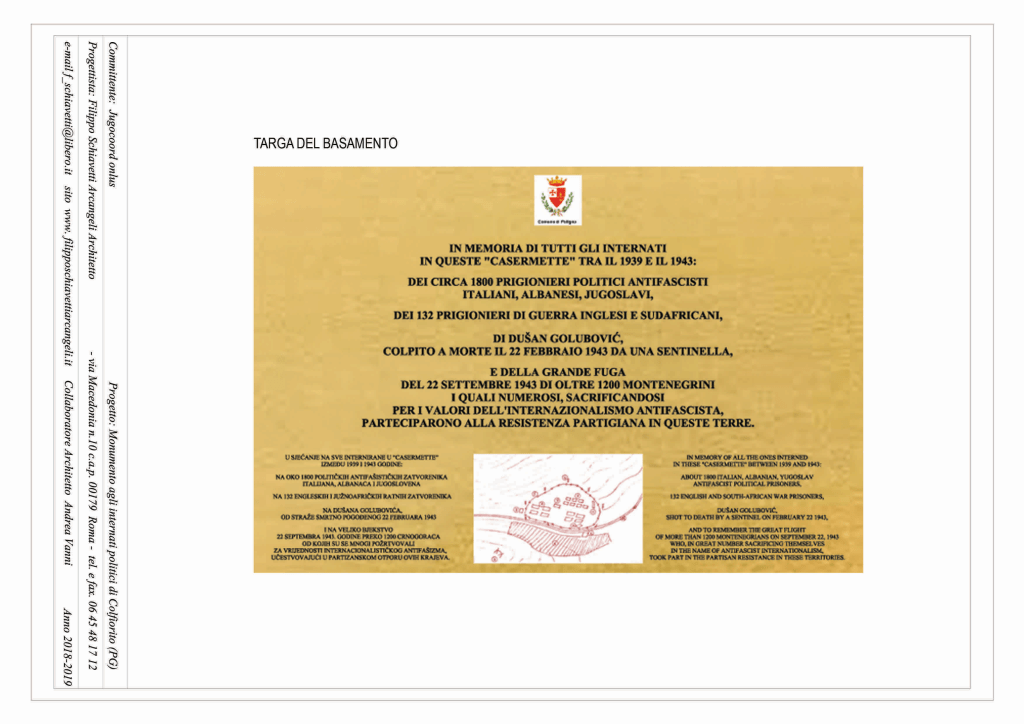 Testo della targa principale, in versione trilingue italiano-serbocroato-inglese