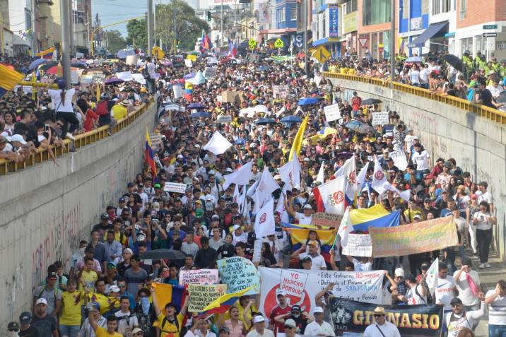 In questo scenario, il la popolazione ha deciso a partire dal 28 aprile (28A), 2021, di marciare contro la riforma fiscale e il governo indolente. La repressione delle forze di polizia è brutale. Le manifestazioni dei cittadini sono stati oggetto di stigmatizzazione e repressione da parte delle forze di sicurezza, il che ha portato diverse organizzazioni per i diritti umani a registrare tra il 28 aprile e il 5 maggio un totale di 1.708 casi di violenza della polizia, 381 vittime di violenza fisica da parte della polizia, 31 morti (in corso di verifica), 1.180 arresti arbitrari contro i manifestanti, 239 interventi violenti della forza pubblica, 31 vittime di aggressioni agli occhi, 110 casi di colpi di arma da fuoco da parte della Polizia e 10 vittime di violenza sessuale da parte della forza pubblica. Allo stesso modo l’ufficio del difensore civico ha sottolineato che sono state registrate 87 denunce per presunte sparizioni durante le proteste dello sciopero nazionale del 28A.