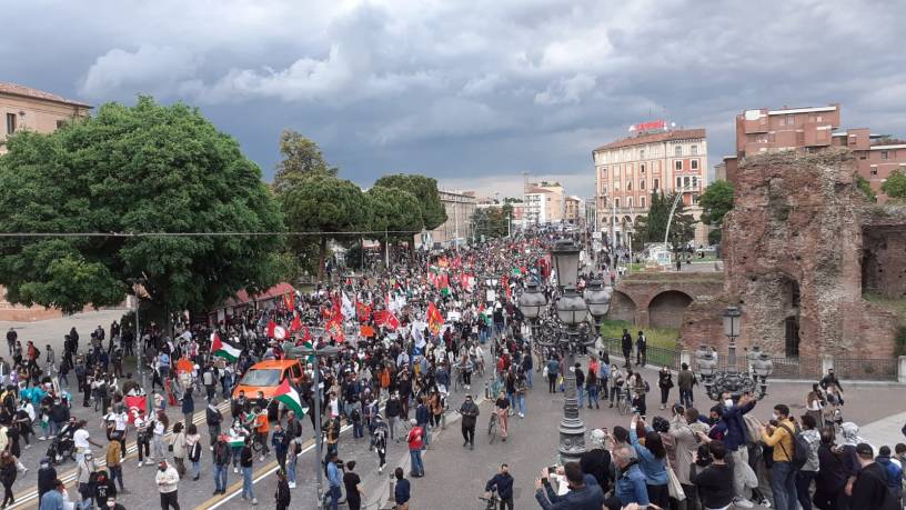 Lunga e partecipata giornata di mobilitazione in solidarietà al popolo palestinese e contro l’aggressione sferrata in questi giorni da Israele. Un presidio convocato in piazza Nettuno ha sfilato fino in piazza dell’Unità, dov’era stato chiamato un secondo sit-in: le due manifestazioni si sono unite raggiungendo di nuovo il centro con migliaia di persone in corteo.