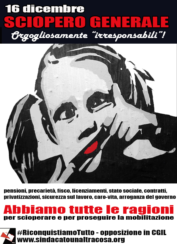 Per questo si sciopera giovedì 16 dicembre! Uno sciopero indetto solo CGIL e UIL e apertamente contrastato da CISL. Uno sciopero che dovrebbe vedere il sostegno di tutti i sindacati e i movimenti conflittuali: nonostante il suo arrivo tardivo, questa è infatti oggi l’occasione per riaprire una dinamica di massa nelle piazze del paese.