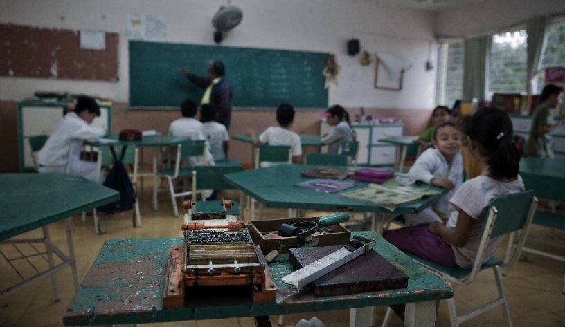 Foto: Una macchina da stampa Freinet in un’aula in Messico, 2013. Sergi Bernal.