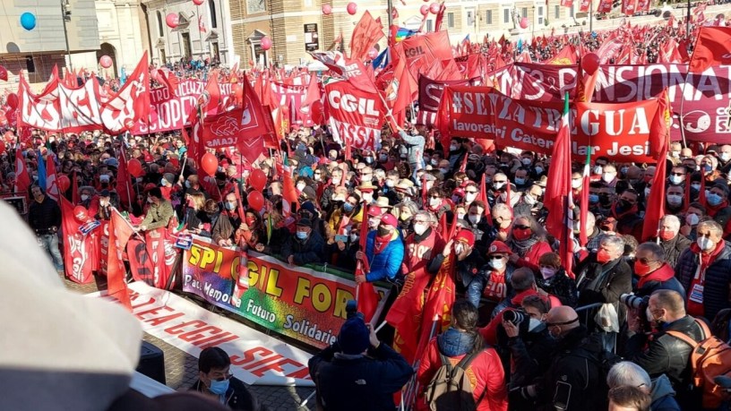 Dunque, era palpabile nel paese l’assenza di qualunque iniziativa che facesse riassumere alle classi lavoratrici una presenza protagonista. E certamente le pur generose iniziative del sindacalismo di base (in particolare lo sciopero generale unitario di tutte le sigle del sindacalismo conflittuale dell’11 ottobre) non potevano essere in grado di colmare questo vuoto. E non è stata in grado di colmarla neanche l’importantissima iniziativa messa in campo dalle lavoratrici e dai lavoratori della GKN di Firenze contro la chiusura della loro fabbrica con lo slogan #Insorgiamo, iniziativa che ha portato in piazza 40.000 persone il 18 settembre.