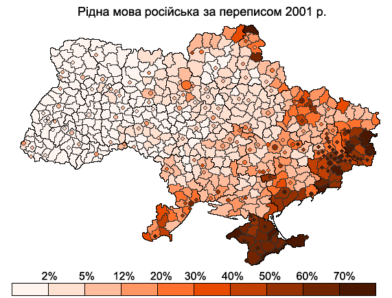 Mentre il rullare di tamburi di guerra si fa sempre più minaccioso (sempre sperando che, come i bulli di periferia, i “nostri” eroi di paccottiglia si limitino a fare la voce grossa per risalire nei sondaggi di popolarità) diamo qualche piccolo ragguaglio “etnico” sul problema russo-ucraino, senza voler fare in poche righe la complicata storia dei rapporti tra i due “popoli fratelli”. Innanzitutto una fotografia (è vero, un po’ ingiallita, visto che da 20 anni in Ucraina non ci sono censimenti) della situazione sul territorio. Il russo è la lingua nativa del 29,6% dei cittadini ucraini (censimento 2001), mentre l’ucraino lo è per il 67,5%. La lingua russa è ampiamente maggioritaria in Crimea e negli oblast di Donetsk e Lugansk (cioè nella Repubblica autonoma annessa alla Russia nel 2014 e nelle due autoproclamate “repubbliche popolari”), ed è più o meno alla pari con l’ucraino negli oblast di Zhaporizhije e di Odessa (tra il 42 e il 44% dei locutori). Bisogna aggiungere che in quasi tutte le città dell’Ucraina meridionale ed orientale il russo supera l’ucraino come numero di parlanti madrelingua, relegando la lingua ufficiale a lingua “della campagna” (vedi cartina in alto). Ciò non vuol dire che i russo-parlanti siano automaticamente pro Russia (tanto meno pro Putin), anche se è piuttosto verosimile che lo siano diventati negli ultimi anni, vista la politica linguistica delle autorità centrali a Kiev. La questione linguistica (che nell’Ucraina occidentale, ex polacca ed ex asburgica, si complica con quella religiosa*) è un problema che si è andato complicando col passare del tempo. L’ucraino era totalmente ignorato (quando non perseguitato) nella Russia zarista, la cui lingua ufficiale era il “grande russo” (o russo tout court). Per gli zar gli ucraini erano i “piccoli russi”, che non godevano di alcuna autonomia (di cui invece godevano i finlandesi e persino, in qualche misura, i polacchi), organizzati nei vari “governatorati” della “Russia meridionale”. Solo dopo la Rivoluzione di Febbraio (1917) e ancor più dopo quella d’Ottobre, la lingua ucraina viene riconosciuta come lingua ufficiale, prima della Repubblica Nazionale dell’Ucraina Occidentale (distrutta dall’invasione polacca nel 1919) e della Repubblica Popolare Ucraina, poi della Repubblica Socialista Sovietica Ucraina (che nel 1922 aderirà all’URSS). Negli anni seguenti la politica linguistica fu spesso contraddittoria, con tentativi di “ucrainizzazione” (come negli anni Venti o tra il 1956 e il 1964) seguiti a ondate di ufficiosa “russificazione” (come negli anni ’30 e ’40 e di nuovo, seppure in forma più soft, dalla seconda metà degli anni ’60 fino alla metà degli anni ’80). In ogni caso, la lingua ucraina rimase lingua ufficiale dell’Ucraina “sovietica” dal 1917 in poi, anche se il russo mantenne sempre il ruolo di lingua urbana, parlato dagli strati “più avanzati” (concetto opinabile, è chiaro) della popolazione. Dopo l’indipendenza della nuova Ucraina, nel 1991, l’ucraino è stato proclamato unica “lingua ufficiale” della repubblica, pur con politiche più o meno forzate di ucrainizzazione a seconda della successione dei presidenti a Kiev. In seguito agli avvenimenti del 2014 (Maidan, Crimea, Donbass, ecc.) lo scontro tra il nazionalismo ucraino, radicalmente anti-russo, e la minoranza russofona è andato radicalizzandosi, portando all’attuale situazione di estrema tensione. Dal mio punto di vista, volendo semplificare al massimo, è come se gli ucraini volessero riparare ad un torto inflitto loro per secoli (prima dagli zar e poi da Stalin) infliggendo a loro volta un torto alle incolpevoli popolazioni russofone, che reagiscono rispolverando le aquile zariste in versione putiniana (o, in misura minore e più contraddittoria, rimettendo in auge i simboli dell’epoca sovietica, quando la “strana agromnaya” – il grande paese – andava dal Baltico al Mar del Giappone senza apparenti dissensi). Con buona pace della “fratellanza dei popoli slavi”, per non parlare di un internazionalismo proletario sepolto nei gulag degli anni Trenta.