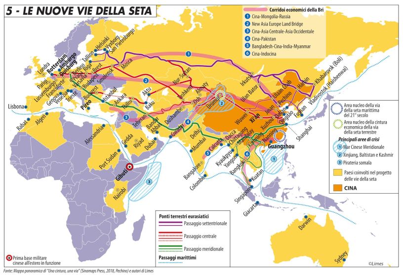 Sulla visione terrestre dei rapporti Cina-Russia-Germania bisogna osservare che non coinvolge affatto gli Stati Uniti che invece controllano tutte le rotte marittime da Guam nel Pacifico, a Diego Garcia nell’Indiano, al Golfo Persico.