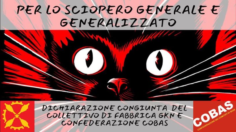 Pubblichiamo questa dichiarazione congiunta frutto di una discussione a più voci tra il Collettivo Di Fabbrica – Lavoratori Gkn Firenze e la Confederazione Cobas dell’exAtaf, di Tim, Telecom e Poste, della scuola e con l’intero esecutivo della Confederazione Cobas, perché ci sembra un importante contributo al dibattito in previsione del prossimo autunno. Sappiamo che il percorso che gli autori del testo ipotizzano è pieno di ostacoli (non ultimo l’esistenza ormai onsolidata di una legislazione antisciopero particolarmente stringente), ma crediamo che sia giunta l’ora di affrontare con coraggio e con spirito unitario i nodi che il testo di GKN e Cobas indicano.
