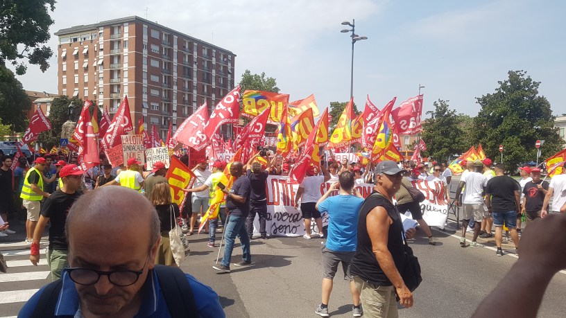 Nonostante le temperature canicolari e il periodo vacanziero, alcune migliaia di lavoratori, soprattutto della logistica ma non solo, hanno manifestato per le vie (periferiche, perché il centro storico era blindato dai servitori in uniforme dello stato dei padroni) di Piacenza. Città diventata, grazie alla solerzia filo-padronale di alcuni esponenti della magistratura, un po’ il simbolo delle lotte nel comparto della logistica. Lavoratori (e pure pensionati; non pochi, a giudicare dalle numerose capigliature grigie e dalle calvizie diffuse) in gran parte giovani e giovanissimi, che hanno dato vita ad un corteo colorato e molto combattivo. Il grosso era costituito, come c’era da aspettarsi, dagli spezzoni dei due sindacati colpiti direttamente dalla repressione, il SiCOBAS e l’USB. Una discreta presenza anche quella dei lavoratori della GKN (in gran parte appartenenti all’area di opposizione di sinistra della CGIL) e del SGB. Meno visibili altri sindacati, come la CUB e la Confederazione COBAS, con qualche bandiera sparsa qua e là. Per quanto riguarda le organizzazioni politiche, bisogna dire che oltre al Fronte della Gioventù Comunista, ben visibile ed organizzato (persino “inquadrato”, oserei dire), con oltre un centinaio di giovani, non c’era gran che (almeno dal punto di vista della visibilità di striscioni e bandiere). Rifondazione Comunista e Potere al Popolo erano varie decine nei loro spezzoni, mentre gli altri (PCL, Sinistra Anticapitalista, PdAC, PCarc, bordighisti, spartachisti, ecc.) sembravano più delegazioni ridottissime (comunque apprezzata la loro testimonianza di solidarietà) che spezzoni organizzati. L’assenza del grosso dei centri sociali (che, sia detto en passant, mi sembrano un po’ stancucci negli ultimi tempi – forse per essere molto concentrati più sull’organizzazione di feste ed eventi ludici in genere che sulle lotte operaie -) e, soprattutto, dell’opposizione di sinistra in CGIL, della Confederazione COBAS e della CUB è stata commentata negativamente da parte di molti manifestanti (almeno ascoltando alcuni capannelli dei militanti più “scafati” – o forse solo più anziani). Comunque si tratta di una prima risposta combattiva alle vergognose misure repressive piacentine che, come promesso da chi parlava ai microfoni del camion che apriva il corteo, non si ferma qui e continuerà, crescendo, nelle prossime settimane. Le loro montature, destinate probabilmente a sgonfiarsi rapidamente vista l’inconsistenza delle accuse agli 8 sindacalisti, non fermeranno certamente le lotte nella logistica, destinate a crescere in numero ed a radicalizzarsi nei contenuti e nelle forme di lotta nel prossimo autunno.