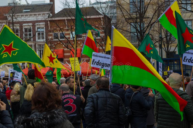 L’iniziativa (indetta dalle organizzazioni della diaspora curda nell’ambito della settimana di azione #WeSeeYourCrimes), aveva lo scopo di denunciare l’utilizzo sistematico da parte dell’esercito turco di armi chimiche, vietate dalle Convenzioni internazionali, nel Kurdistan del Sud ((in territorio iracheno) contro la Resistenza curda. In particolare richiedere a chi di dovere (all’OIAC, l’Organizzazione per l’interdizione delle armi chimiche, con sede all’Aia) di avviare un’inchiesta in merito a questo uso criminale di sostanze proibite. Possibilmente inviando una delegazione di osservatori internazionali indipendenti. Stando alla versione ufficiale, i reparti della polizia mobile olandese sarebbero intervenuti preventivamente quando una parte dei manifestanti, inalberando cartelli con i volti delle vittime dei gas tossici, aveva mostrato di aver l’intenzione di raggiungere l’ambasciata turca. Invece secondo gli organizzatori le cariche sarebbero iniziate quando ancora molti stavano raggiungendo il luogo convenuto per il raduno.
