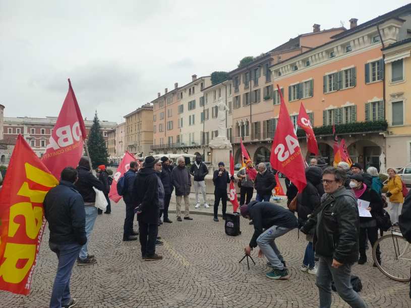 Lo sciopero generale del sindacalismo di base ha avuto un limitato successo a Brescia, se si escludono il settore della logistica e di Brescia mobilità, dove invece l’impatto è stato significativo. D’altra parte il radicamento reale del sindacalismo di base, nella nostra provincia, è sostanzialmente questo, con qualche eccezione positiva nella grande distribuzione (CUB) e alla Synlab (COBAS e CUB). Da tempo, purtroppo, i COBAS della scuola hanno un’influenza molto più limitata che nel passato, e l’assenza di un vero movimento studentesco non aiuta certo la mobilitazione in questo settore. Per quanto riguarda poi le fabbriche, l’egemonia della FIOM non è stata scalfita, nonostante alcune realtà (come la Pasotti) in cui l’opposizione di sinistra (sempre però nell’ambito della FIOM) ha la maggioranza. Il presidio di oggi pomeriggio davanti alla Prefettura è stato un po’ lo specchio di questa realtà non certo esaltante: circa un centinaio i presenti, appartenenti a COBAS, CUB e USB, con la partecipazione di Nonpaghiamo e Diritti per tutti. Assente il SICOBAS, che, pur avendo co-proclamato lo sciopero, ha deciso di concentrarsi nei picchetti nel settore della logistica e di non venire al presidio in centro. Dopo l’intervento di Muro, a nome del COBAS di Brescia mobilità, una delegazione si è recata dal prefetto per illustrare al rappresentante del governo le richieste, che si possono riassumere nello slogan “Giù le armi, su i salari”: non un uomo, non un soldo per la guerra, aumenti salariali subito per recuperare l’inflazione. Domattina vari pullman partiranno da Brescia per partecipare alla manifestazione nazionale di Roma. Quello dell’USB (a cui partecipa anche Nonpaghiamo di Brescia) partirà alle 6 dall’ortomercato. Sperando che Roma dia qualche soddisfazione in più della gelida piazza bresciana di questo pomeriggio.