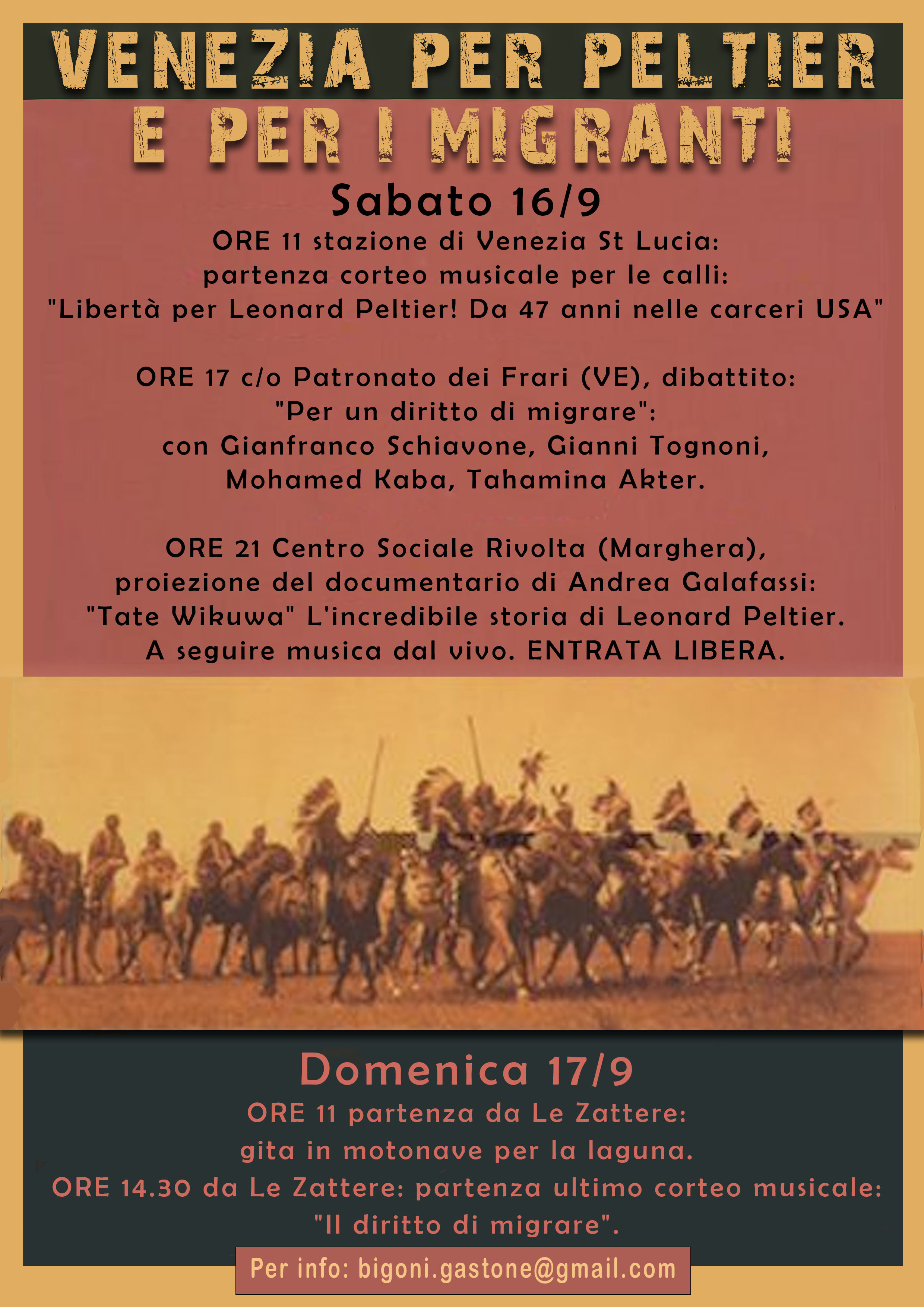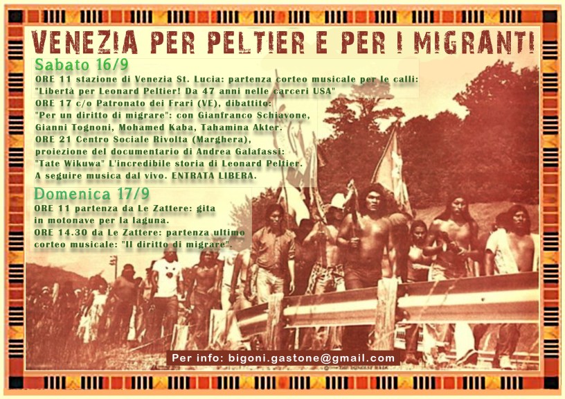 - ore 21 al centro sociale Rivolta di Marghera proiezione film su Peltier, dibattito, MUSICAAAAA