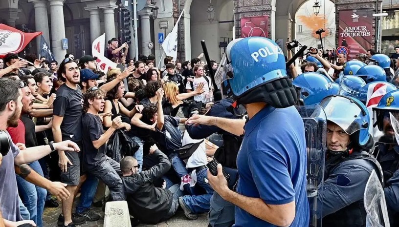 E ai giovani studenti di Torino che manifestano contro la visita della Meloni e le sue politiche, manganellate e botte da orbi (nella foto di copertina, ndr). Un governo che di fronte a qualsiasi problema e tensione sociale, a partire dal disagio giovanile non ha altre risposte che la repressione e la galera (il loro vero marchio di fabbrica) e che non esita a “trasformare” – sono le parole del direttore de La Stampa “l’intera penisola in un gigantesco campo di concentramento”. E la gara tra Meloni e Salvini tra chi è il più cattivo è semplicemente rivoltante segnando la messa in discussione dello stato di diritto e un percorso verso lo stato di polizia.