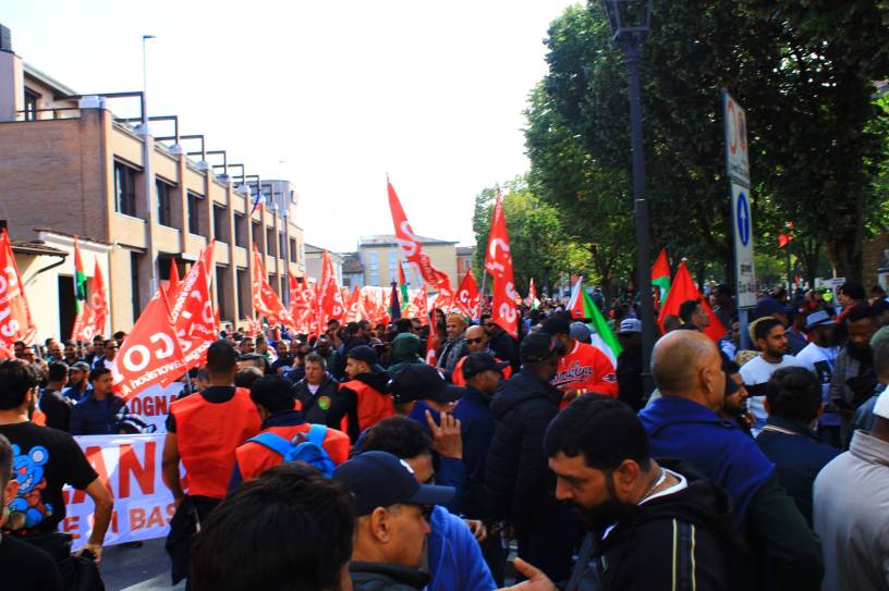 Oggi pomeriggio a Ghedi (tra il centro della cittadina e l’entrata alla base atomica) c’è stata una bella manifestazione. Bella non solo perché numerosa (circa 5 mila persone), colorata e combattiva, ma perché si è trattato di una manifestazione integralmente internazionalista, che non ha concesso nulla alle sirene guerrafondaie dell’uno (leggi NATO e dintorni) e dell’altro (leggi imperialismo russo e dintorni) schieramento contrapposti, in Ucraina innanzitutto, ma un po’ ovunque sul pianeta. Il grosso dei manifestanti era composto dai militanti del SICOBAS, in gran parte giovani lavoratori immigrati, ma erano presenti decine di organizzazioni politiche e sindacali (compresi noi di Brescia Anticapitalista e, tra i molti, anche una delegazione dell’opposizione di sinistra in CGIL, guidata da Eliana Como e Luca Scacchi). Presenti anche, come c’era d’aspettarsi, numerose bandiere palestinesi, mentre il corteo rispondeva allo slogan lanciato dal camion (e troppo spesso dimenticato anche a sinistra) di “PALESTINA LIBERA! PALESTINA ROSSA!” Il corteo era aperto da una delegazione di compagn* di Ghedi, che inalberavano bandiere della pace. Bandiere presenti anche lungo il corteo, ma immerse in un mare di bandiere rosse, sindacali e politiche, che non lasciavano dubbi sul carattere proletario e internazionalista dei partecipanti.