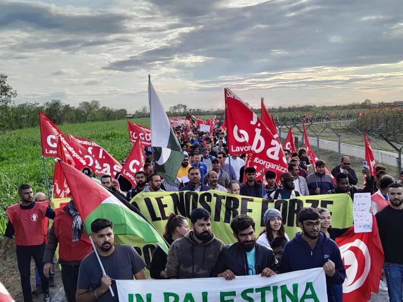 Per noi, ne siamo coscienti, è un grosso impegno. Siamo da anni sotto una serie di ininterrotti attacchi padronali e statali: al momento il conflitto più duro è quello con la multinazionale francese Leroy Merlin, che vuole attuare a Piacenza 500 licenziamenti per imporre un salto all’indietro delle condizioni di lavoro nei suoi magazzini, da noi conquistate con lotte di anni e anni. Assumiamo questo impegno con lo sguardo rivolto ai nostri fratelli e sorelle di classe della Palestina, dei paesi arabi e di tutto il mondo con la speranza che altri, molti altri, prendano la nostra stessa decisione. Lo facciamo sullo slancio della manifestazione di Ghedi che ha visto un particolare protagonismo dei nostri lavoratori, dei loro figli e delle loro figlie, una particolare spontaneità – lo ripeto: specie nelle giovani generazioni – nell’esprimere il sostegno alla lotta dei palestinesi che sentono come una loro lotta.