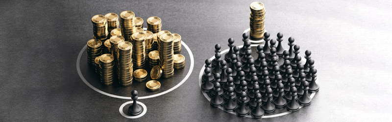 Vi è stata poi una leggera flessione e così alla fine del 2022 il 5% più ricco delle famiglie italiane deteneva il 46% delle ricchezza netta complessiva, mentre il 50% più povero ne possedeva meno dell’8%.