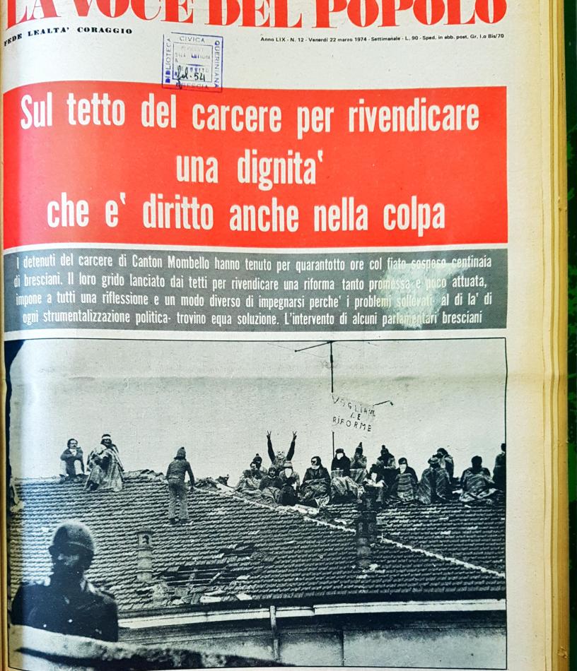 Entrambi i quotidiani si occupano invece della nuova rivolta nel carcere di Canton Mombello, innescata dalle analoghe sommosse scoppiate in altre carceri: BS Oggi però pubblica anche la “Piattaforma rivendicativa” dei detenuti, articolata in 8 punti in cui è ben riconoscibile l’ispirazione della sinistra extraparlamentare, mentre il GDB ignora completamente la questione, limitandosi a parlare degli scontri tra detenuti e secondini (12).
