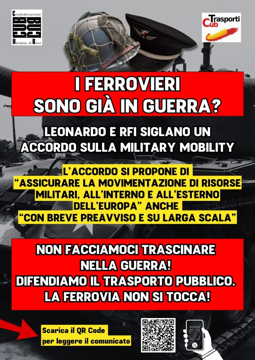 FERROVIE: ACCORDO RFI-LEONARDO SULLA MILITARY MOBILITY, I FERROVIERI SONO GIÀ IN GUERRA?