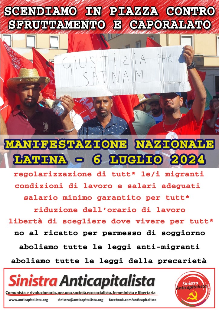 Non è un segreto per nessuno e ogni tanto qualche caso più eclatante raggiunge la cronaca locale, o quella nazionale, come nel caso di Satnam Singh, ma invece di estendere le tutele per lavoratrici e lavoratori, i governi e le amministrazioni si indignano e scandalizzano sul momento e poi continuano a tutelare gli interessi dei padroni e i loro profitti, negando coscientemente i diritti, la salute e la sicurezza di chi lavora.