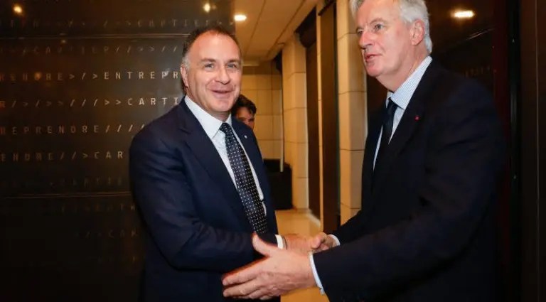 Il fallimento del governo Barnier è soprattutto il fallimento del tentativo di gestire le contraddizioni interne del capitale in un quadro parlamentare. Nominando l’ex commissario europeo come primo ministro nel gabinetto francese, Emmanuel Macron stava cercando di creare un blocco in grado di raggiungere un compromesso all’interno del capitale francese. Ed è questo compromesso che è fallito con la mozione di censura approvata il 4 dicembre. (Nella foto in alto Michel Barnier stringe la mano al presidente della Confindustria italiana Emanuele Orsini durante un meeting economico)