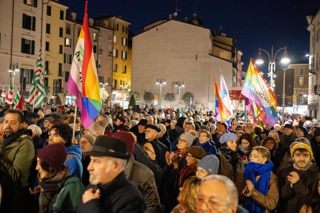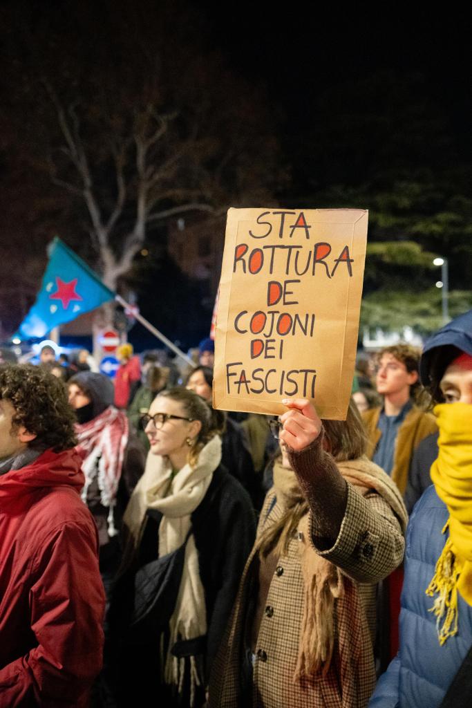 Ma c’è stata anche un’altra risposta, molto più forte e netta. Molto più alta, in ogni senso. Stasera la città era viva, si muoveva e, come cantava Dalla, andava in onda. Una barca immensa, una nave di gioia e di forza, che non ha bisogno di soccorrere perché sono già tutti su, tutti a bordo. Noi navighiamo e respingiamo, perché i luridi sono a terra, nella terra e nel fango, e lì è giusto che rimangano. Perché Brescia, e ogni altra cosa, non sarà mai loro e finché avremo un ultimo fiato non sarà mai di nessuno, perché le vita di ognuno di noi scorre senza appartenere e le città come Brescia, e questa sera lo hanno visto tutti, sono le nostre stesse vite che respirano, si espandono, cantano, navigano. Loro respingono le navi, i barconi, chiudono i porti e trovano giudici che chiudono occhi e cervello per assolverli, noi, tutti noi antifascisti compresa Passidipartenza, siamo naviganti, come cantava Fossati, che respingono loro e i loro caporali. Soldati di buio, che rimangono topi o blatte, nemici del sole, della vita e della giustizia.